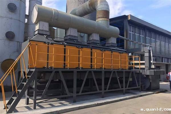根据吸附(效率高)和催化燃烧(节能)两个基本原理设计 ,即吸附浓缩-催化燃烧法,本装置由前置预处理装置、活性炭吸附脱附装置、催化燃烧装置、电力控制系统以及风机组成,其工作原理是依靠贵金属催化剂的作用,有机废气中的可燃成在较低的温度下氧化分解净化的方法。