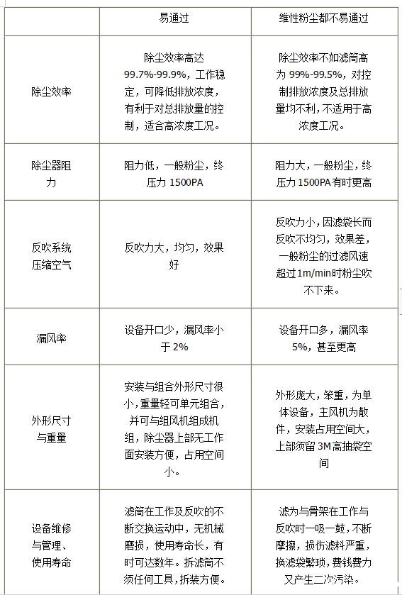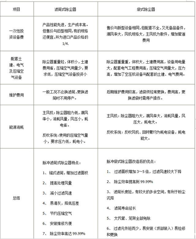 1、滤筒式除尘器vs布袋除尘器