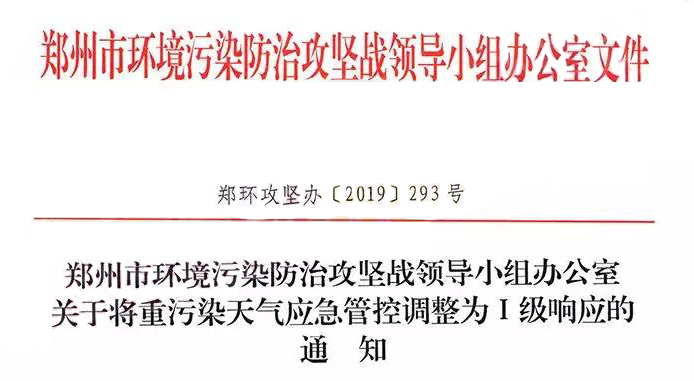根据空气质量会商结果,郑州市环境污染防治攻坚战领导小组办公室发布了《关于将重污染天气应急管控调整为I级响应的通知》,自12月19日0时起已经将重污染天气II级响应调整为I级响应。建议各类工地自觉调整工期,减少涂料 、油漆、溶剂等挥发性有机物原材料及产品的使用。而强制性减排措施方面有如下几点要求: